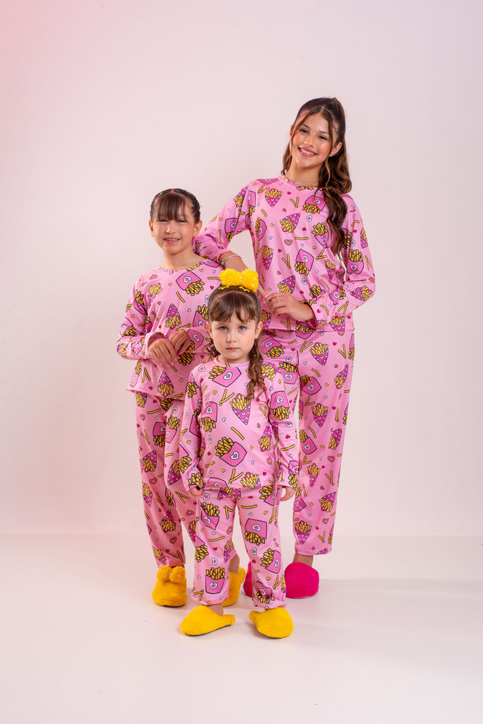 Baby-Doll Infantil Longo Batatinha Frita Rosa